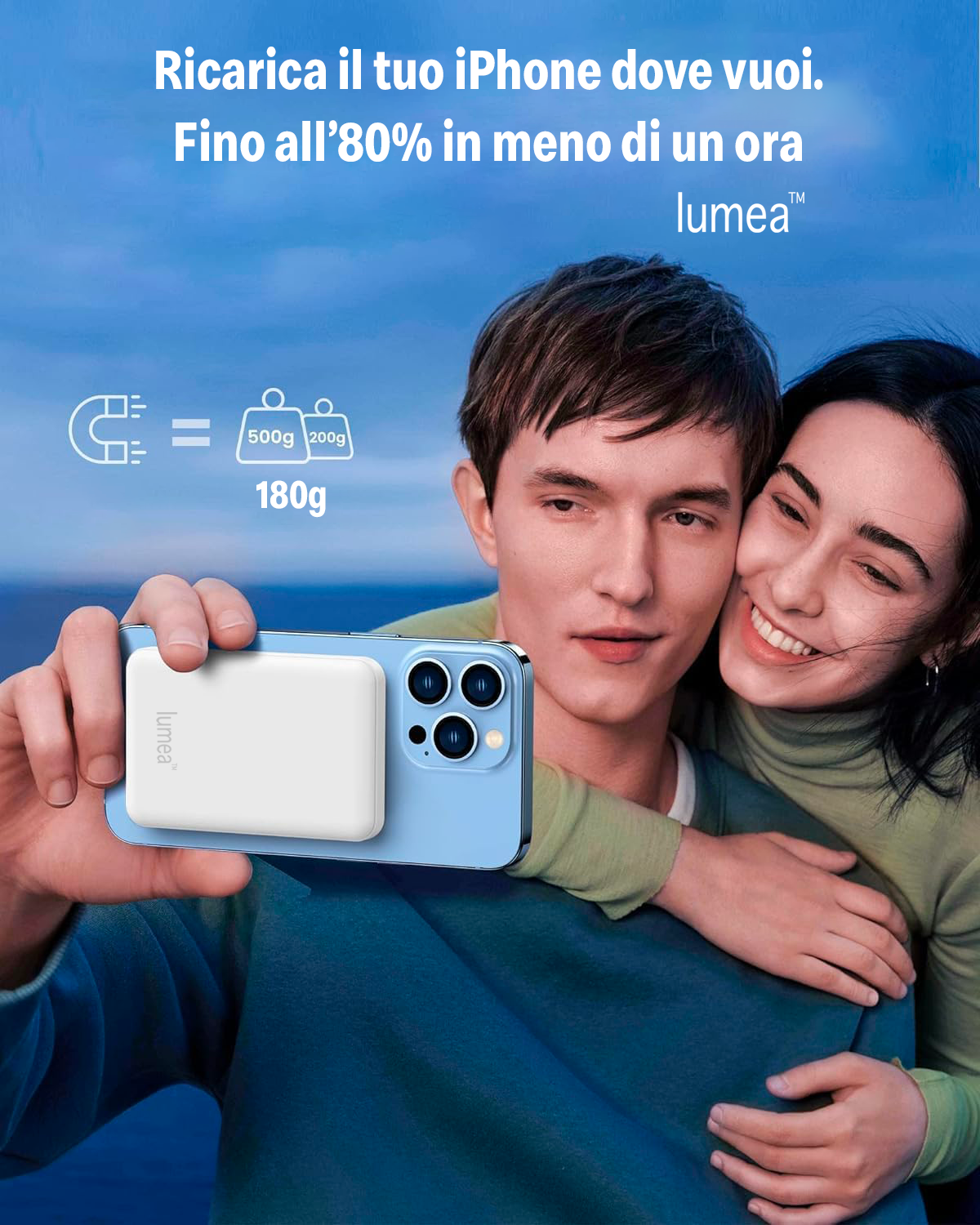 Il Lumea Powerbank è compatibile con iPhone dotati di tecnologia MagSafe (dal 12 in poi).